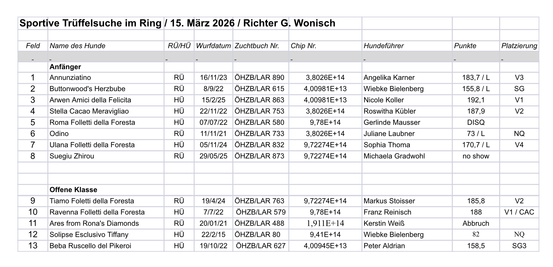 - Platz: Tiamo Folletti della Foresta mit Hundeführer Markus Stoisser